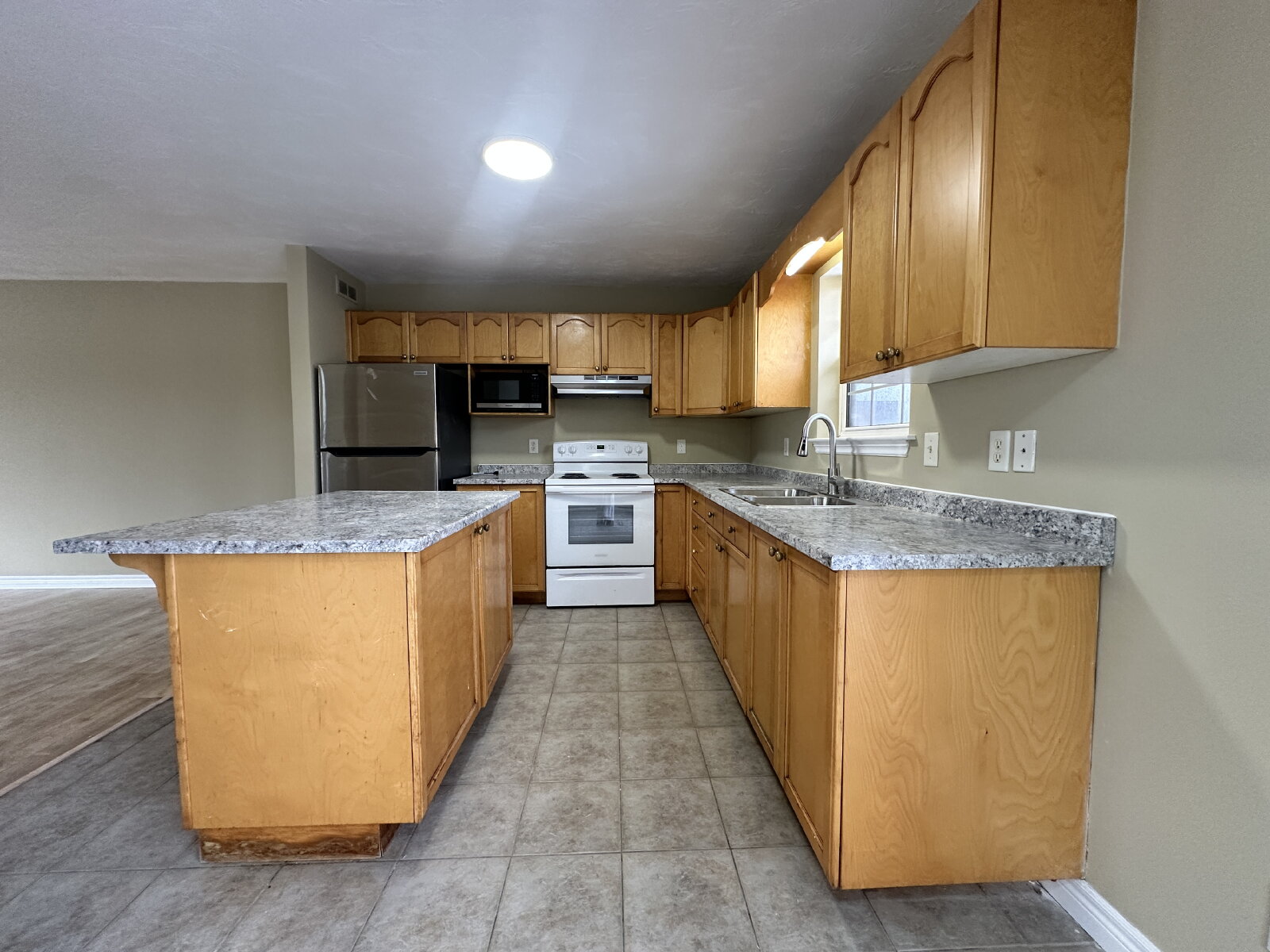 -Large open-concept living, kitchen & dining area