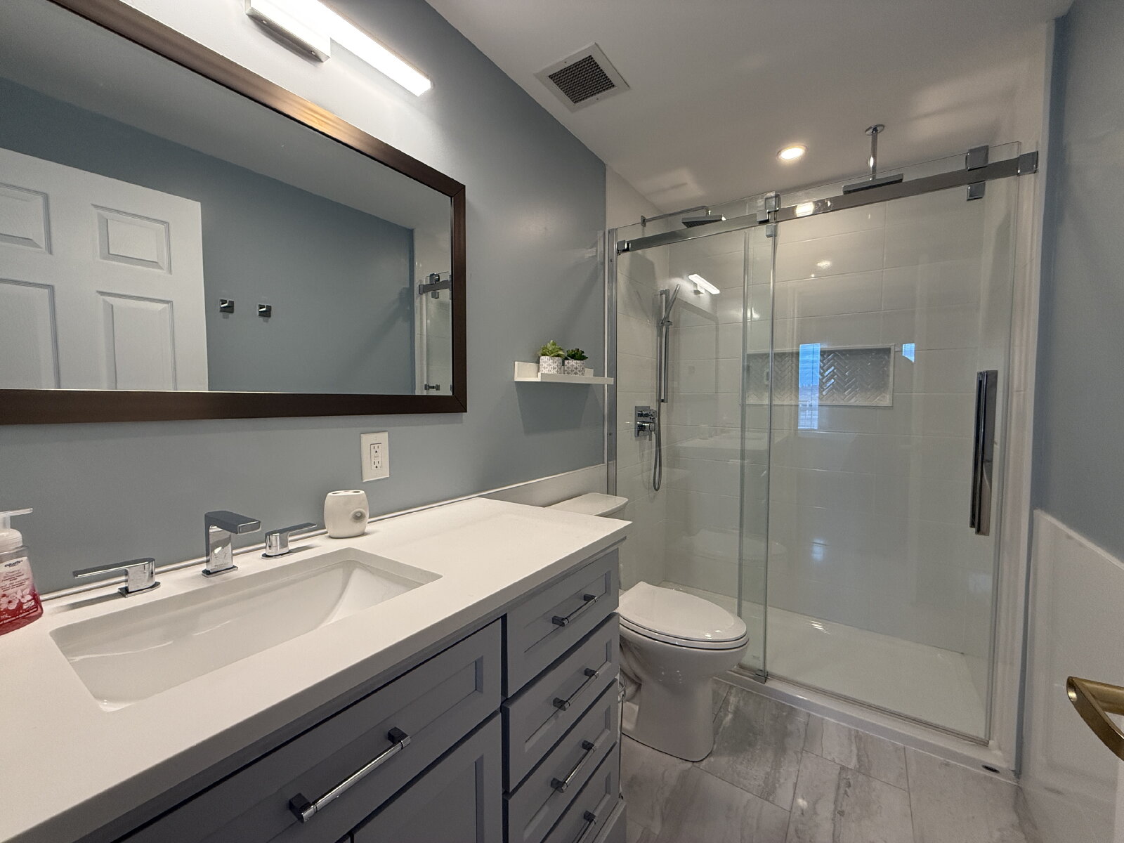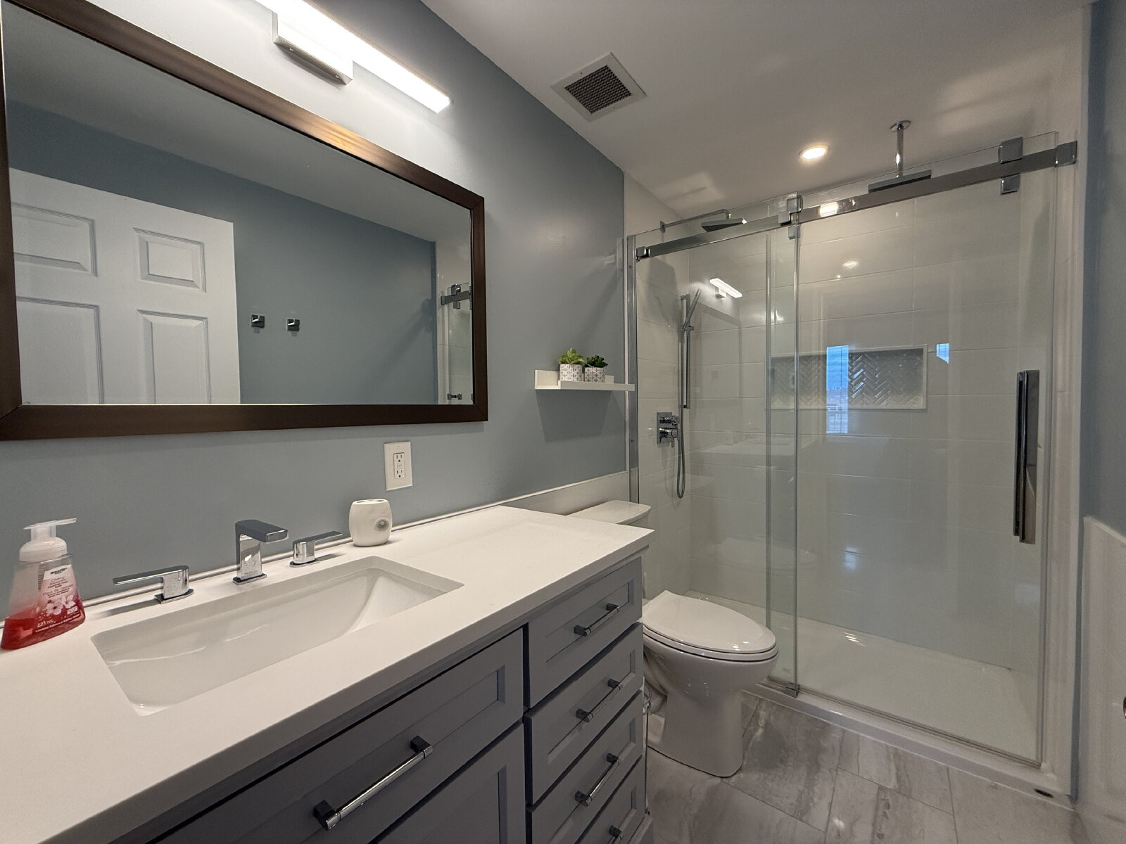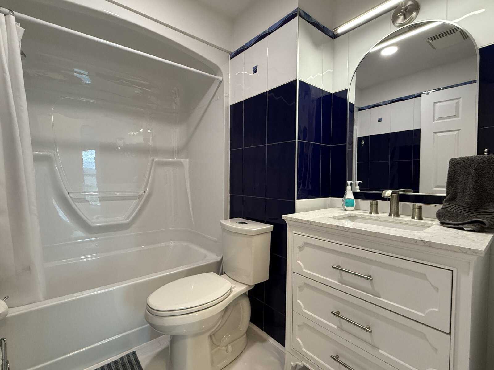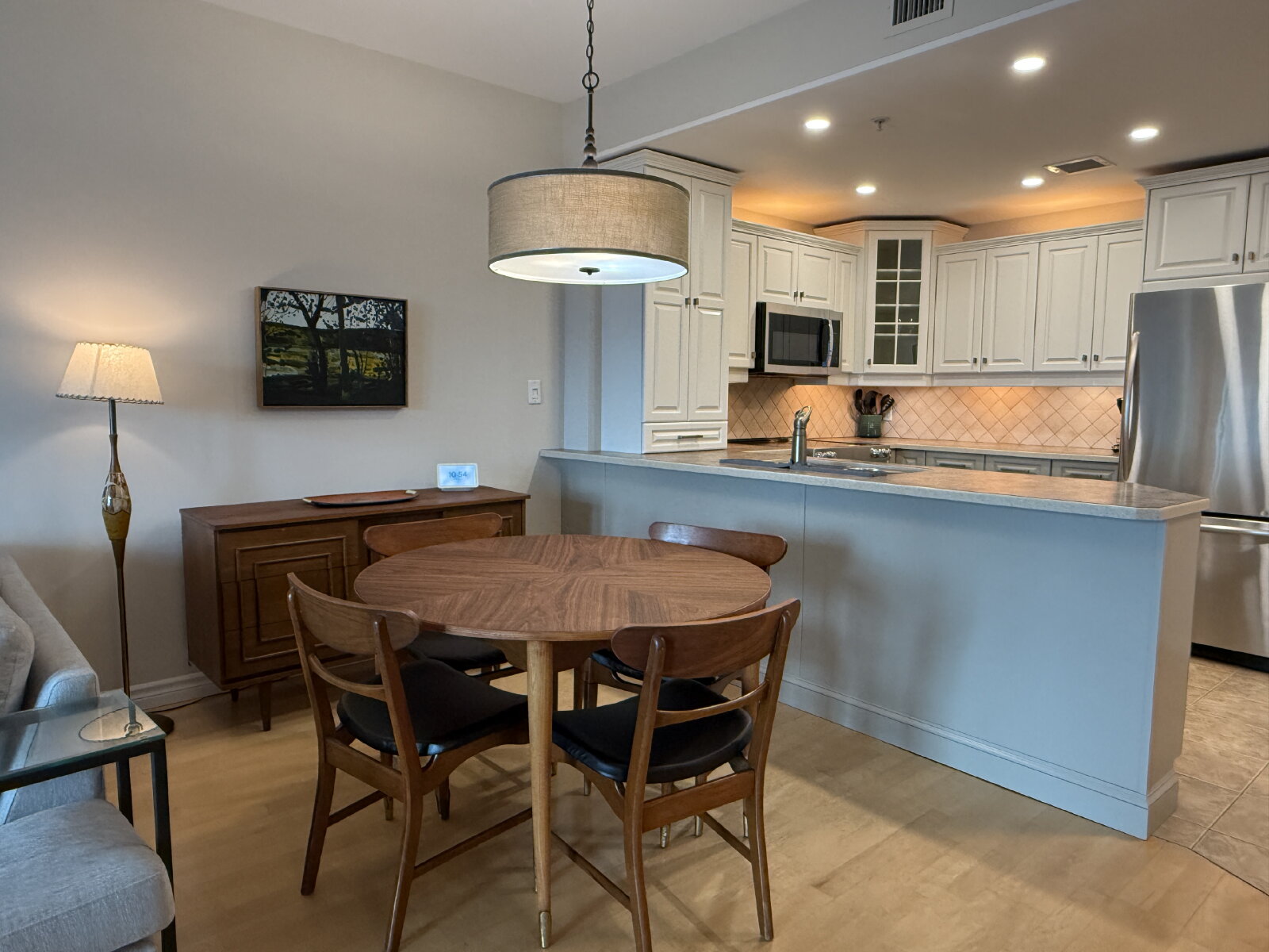 - Tiled backsplash with under/over cabinet lighting