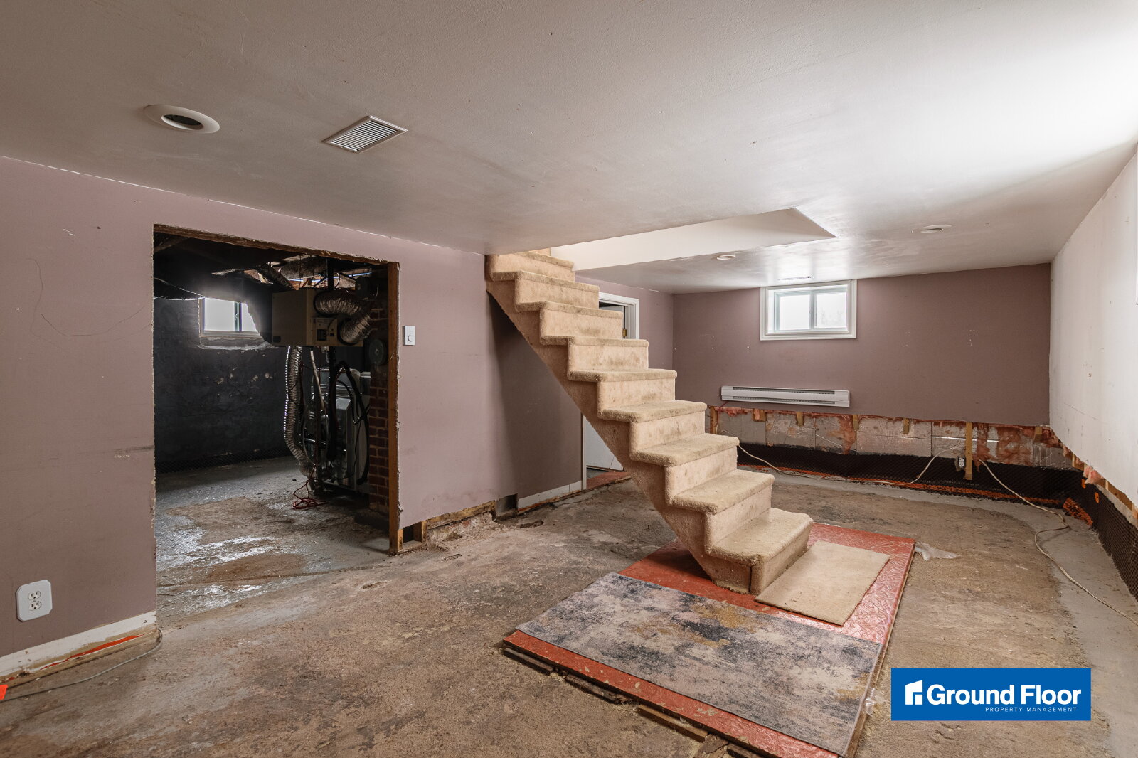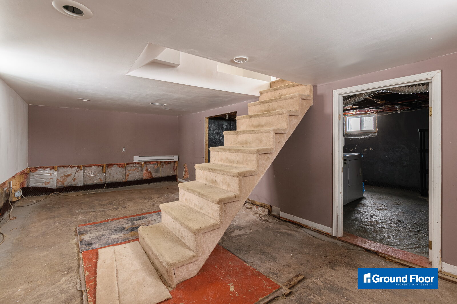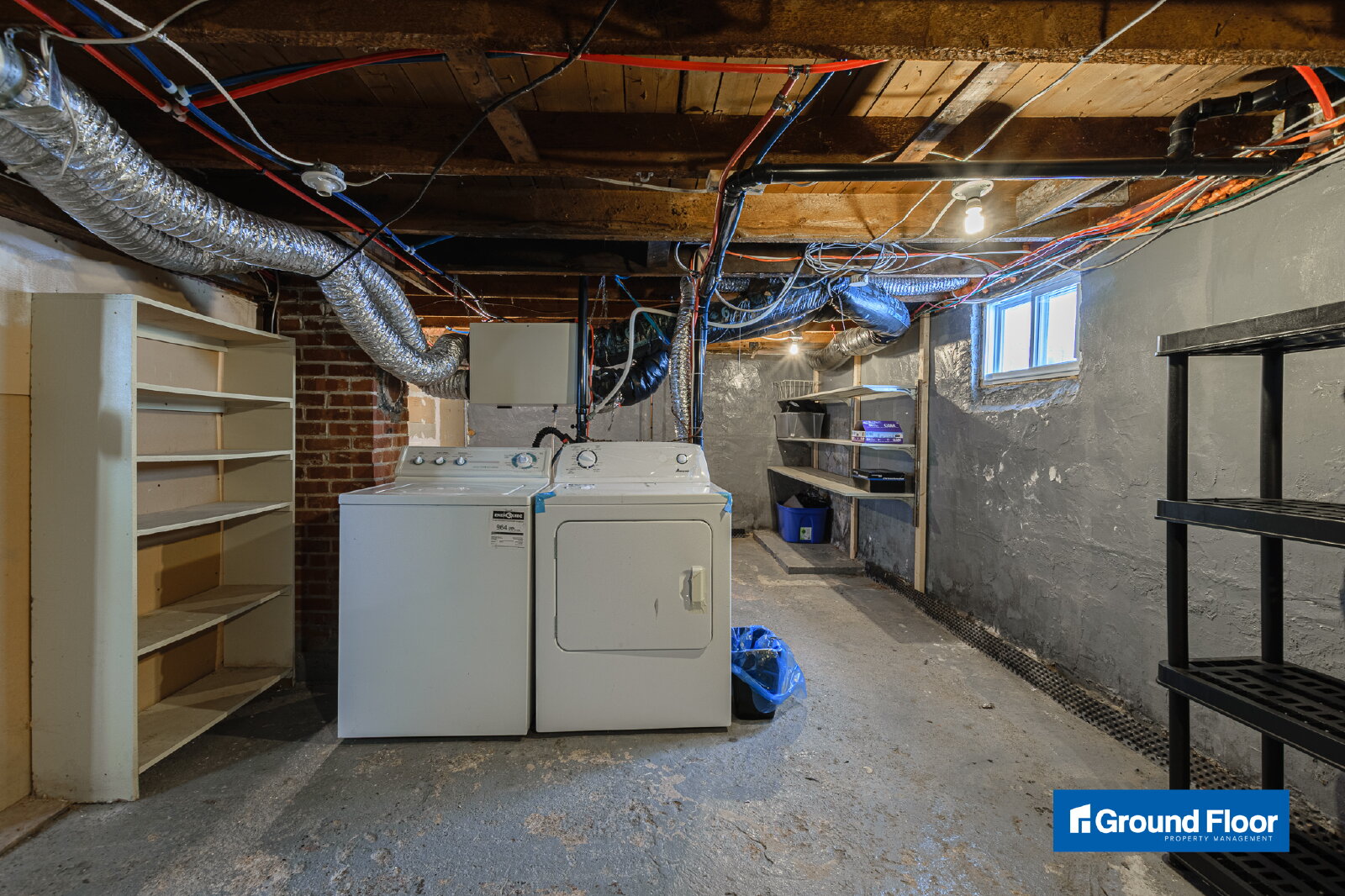- Unfinished basement for storage